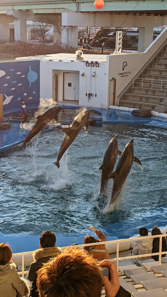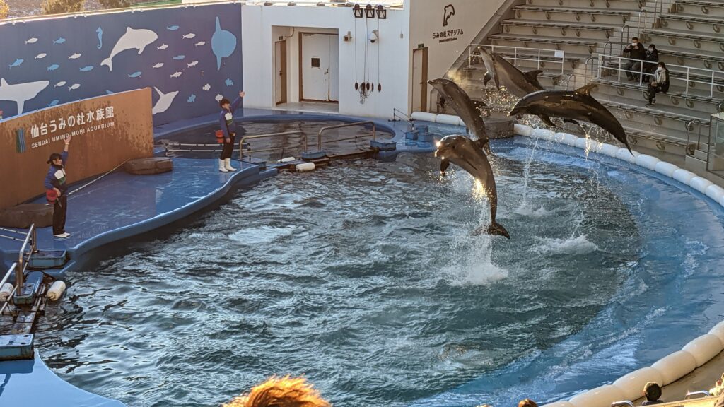 正直、ショーの内容は迫力に欠けるかもしれません。技の錬度も最近行った浅虫水族館のカマイルカに負けているような気がします。プールが小さいせいでしょうか?敷地面積の割にショープール小さいような気がしますね。