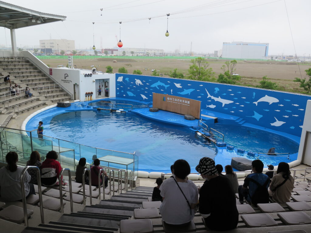 アクセスはちょっと悪いかもしれません。在来線で行こうとすると仙台駅から15分位電車に乗って陸前高砂駅か中野栄駅まで移動し、そこから1.5㎞くらい歩くと水族館があります。